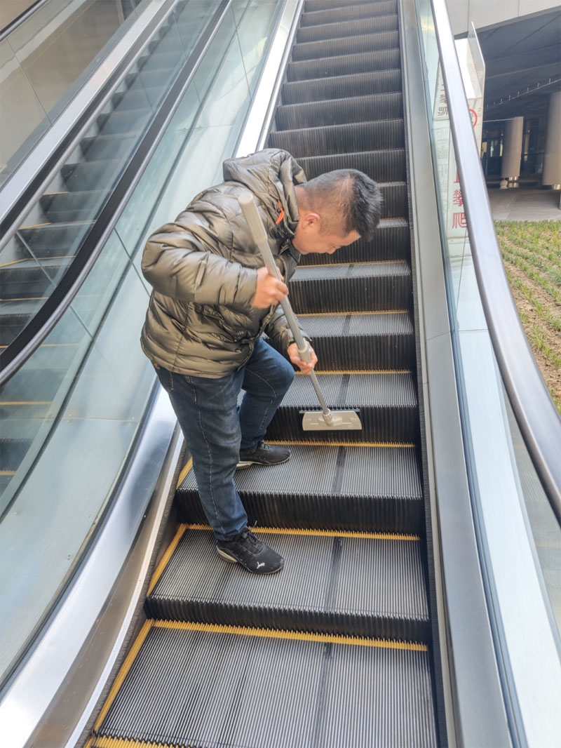 針對展覽中心人流密集、扶梯縫隙易積污的痛點,其刷頭緊密貼合梯級,深度清除污垢。