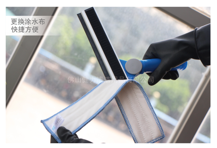 1、沾水刮擦:把有海綿的一面沾上肥皂水在玻璃上擦,然后再用另一邊的橡膠條的邊平壓在玻璃上,從上到下刮(不能來回刮,只能順著一個方向刮);